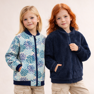 Soğuk günlerde hem sıcak tutan hem de iki farklı görünüm sunan çift taraflı polar ceket. Bir yüzü yumuşacık peluş/polar dokulu düz renk, diğer yüzü desenli kumaş tasarımıyla tek ürünle iki ayrı kombin yapmanı sağlar. Hafif yapısı sayesinde gün boyu konforlu kullanım sunar.