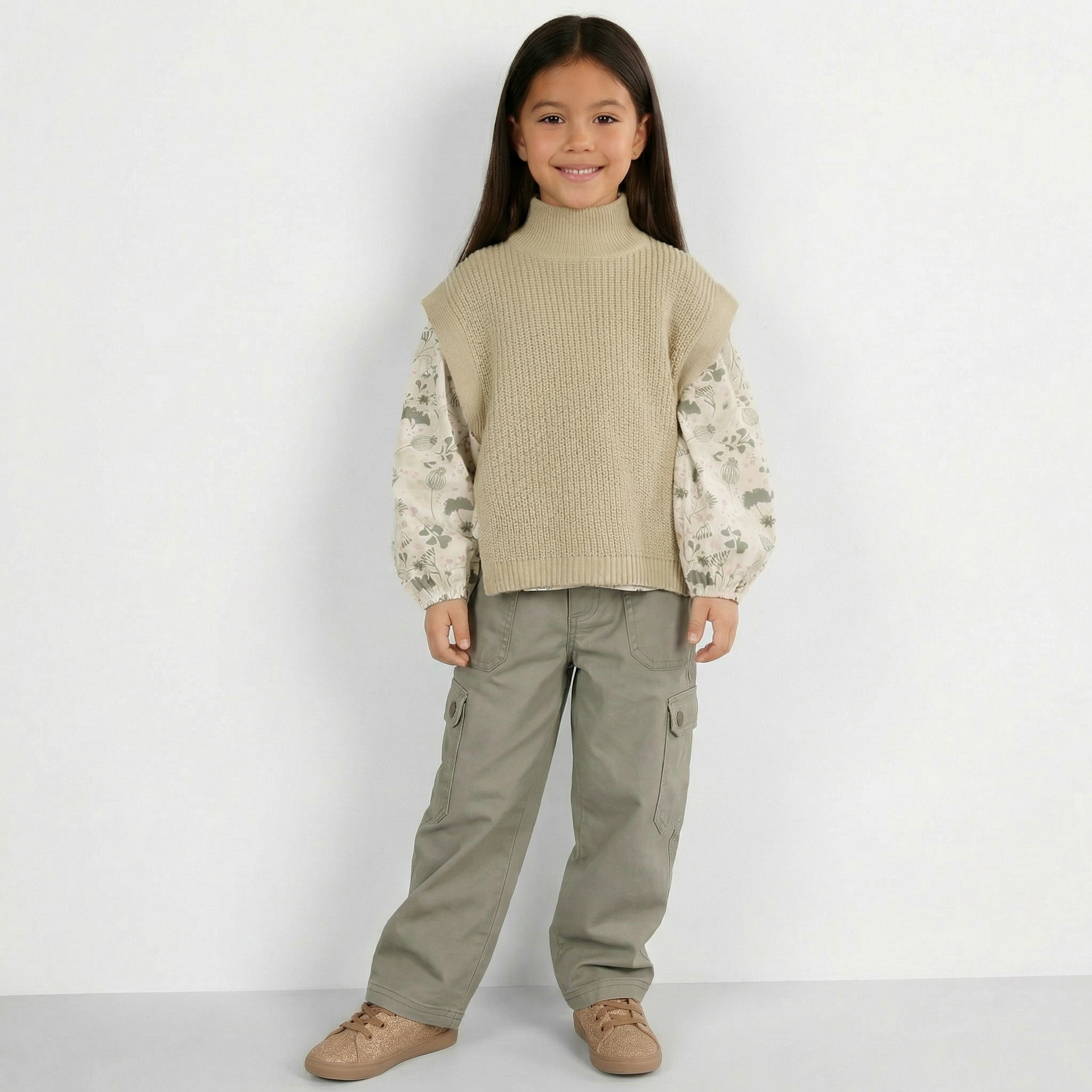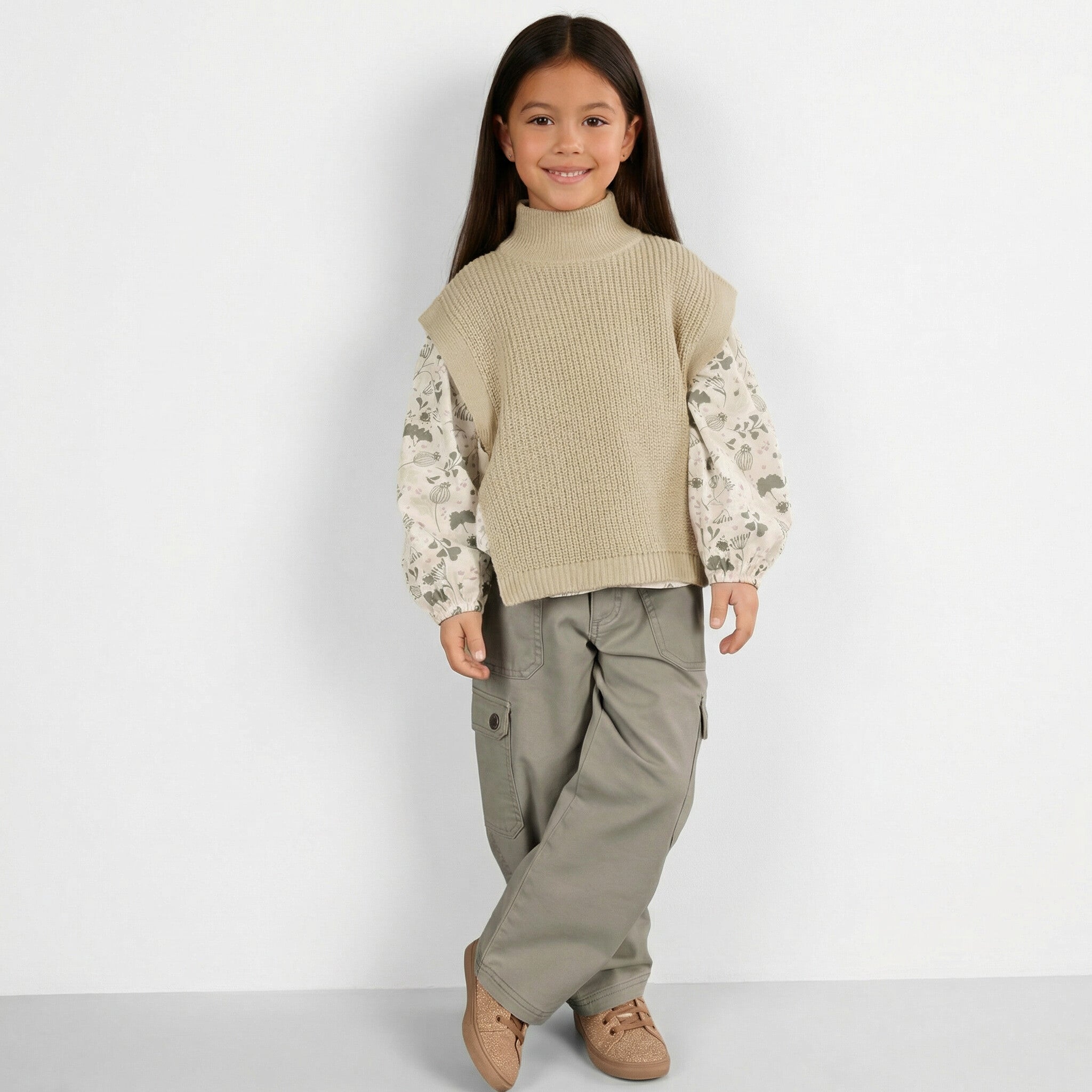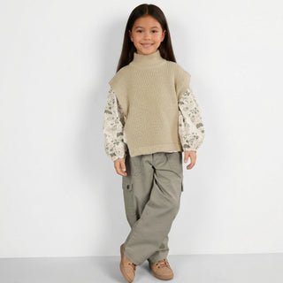 Şıklık ve rahatlığı bir araya getiren kız çocuk 3’lü kombin; günlük kullanımdan özel günlere kadar her ortamda uyum sağlar. kargo pantolon, çiçek desenli bluz ve yandan bağlamalı simli triko süveter ile katmanlı, modern ve konforlu bir görünüm sunar. Pamuklu parçalar nefes alabilen yapısıyla gün boyu rahatlık sağlar; simli triko süveter ise kombine zarif bir dokunuş katar.